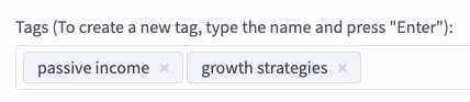 To add a new tag to a module, simply enter it in the "Tags" field while creating the module, and hit "Enter".