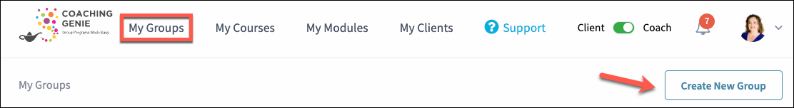 Step 1. Click the My Groups tab, then click the Create New Group button.
