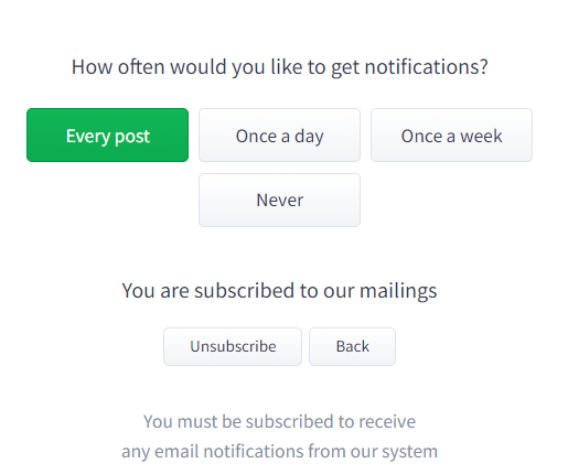 Clients can manage the emails they receive by choosing the subscription option they prefer.