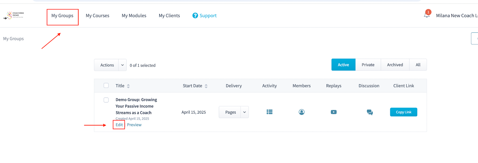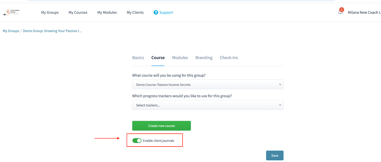 Once the feature is disabled and saved, the feature icon will no longer appear for clients in that group.